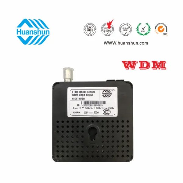 環順的HSGS10076W光接收機是專為CATV網絡的FTTH 應用而設計的入戶型光接收機。具有結構小巧緊湊、式樣美觀、 應用方便等 特點,在高達1000Mhz的帶寬下能夠提供穩定的輸出電平和優異的性能指標,具有極寬的光功率工作范圍。