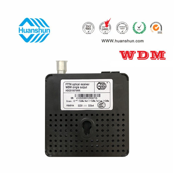 環順的HSGS10076W光接收機是專為CATV網絡的FTTH 應用而設計的入戶型光接收機。具有結構小巧緊湊、式樣美觀、 應用方便等 特點,在高達1000Mhz的帶寬下能夠提供穩定的輸出電平和優異的性能指標,具有極寬的光功率工作范圍。